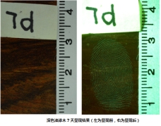 7、適用客體及介質(zhì):適用于深淺和多背景面(含微麻面)上微量汗液、油脂及汗油、汗灰混合潛在痕跡;